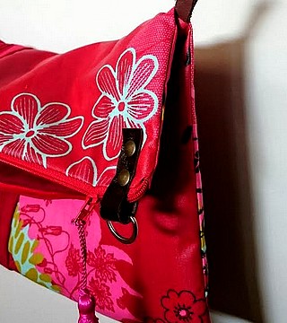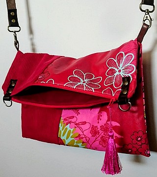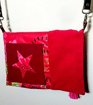 Sac rouge en toile enduite et velours Bandoulière en cuir amovible Fermeture éclair rouge Doublure en coton rouge Poche extérieure et intérieure