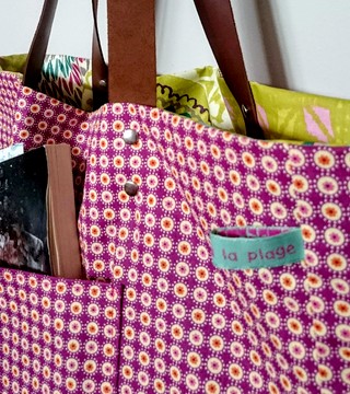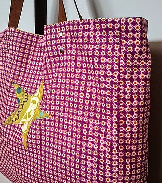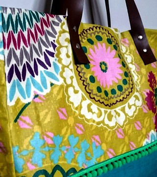 Coton enduit à grands motifs LIn enduit bleu canard pour la partie inférieure Doublure coton Plusieurs poches intérieures Anses en cuir