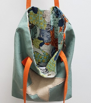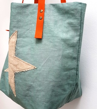 100 % Lin enduit Étoile lin Doublure coton et étoile lin enduit Grande poche intérieure Fermeture aimantée Anses en cuir.