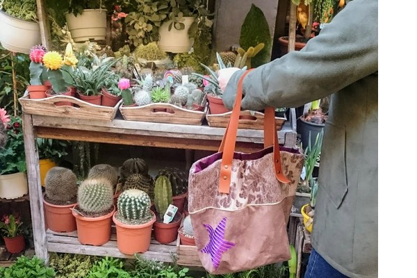 Grand cabas en toile enduite prune