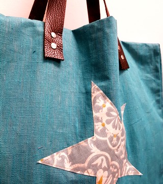 GRand cabas en lin enduit bleu paon.